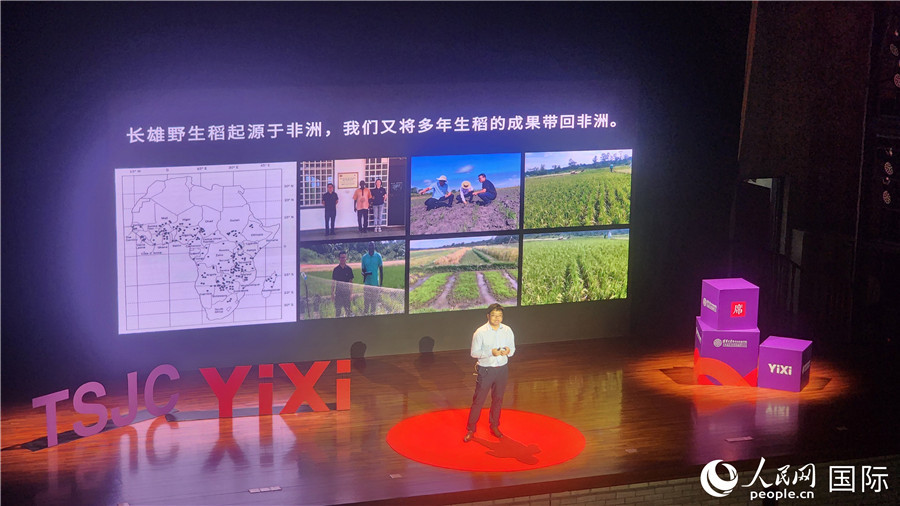 | 云南大學(xué)農(nóng)學(xué)院副院長(zhǎng)張石來(lái)講述多年生水稻的培育以及與非洲國(guó)家的合作。人民網(wǎng)記者 萬(wàn)宇攝 |