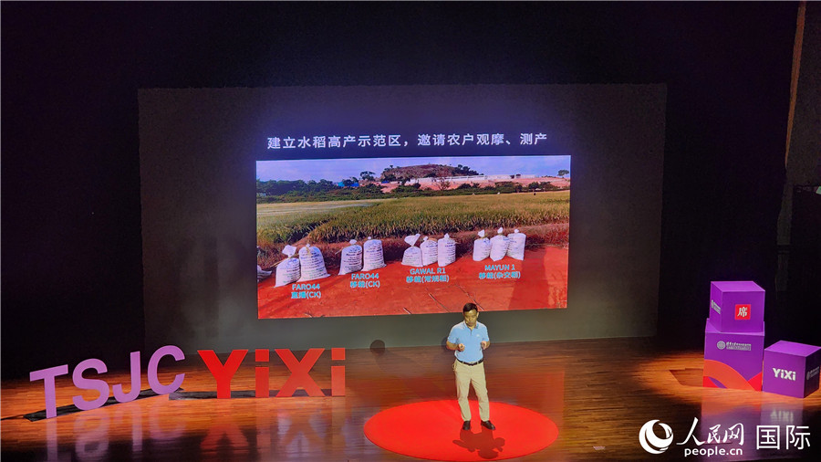 | 中國(guó)農(nóng)業(yè)科學(xué)院作物科學(xué)研究所二級(jí)研究員徐建龍講述雜交稻在非洲國(guó)家如何提高糧食產(chǎn)量。人民網(wǎng)記者 萬(wàn)宇攝 |
