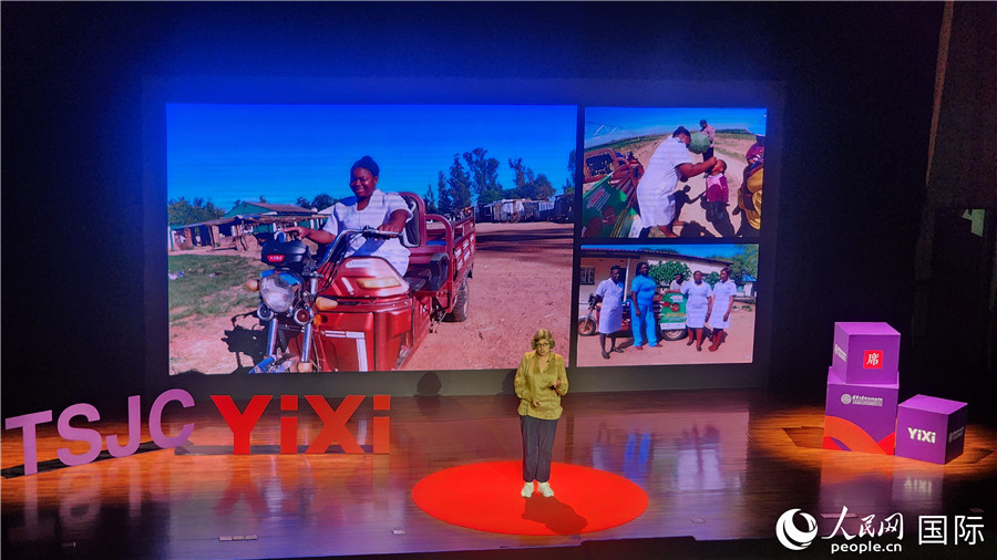 | 在津巴布韋推廣中國(guó)電動(dòng)三輪車和光伏發(fā)電的澳大利亞企業(yè)家白杉(Shantha Bloemen)。人民網(wǎng)記者 萬(wàn)宇攝 |
