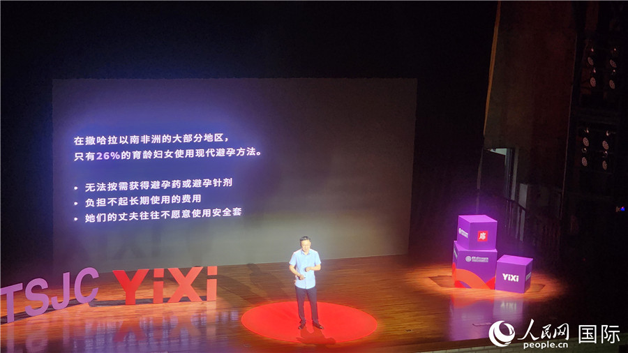 | 上海達(dá)華藥業(yè)副總經(jīng)理周成杰介紹中國(guó)創(chuàng)新避孕產(chǎn)品如何呵護(hù)非洲女性健康。人民網(wǎng)記者 萬(wàn)宇攝 |