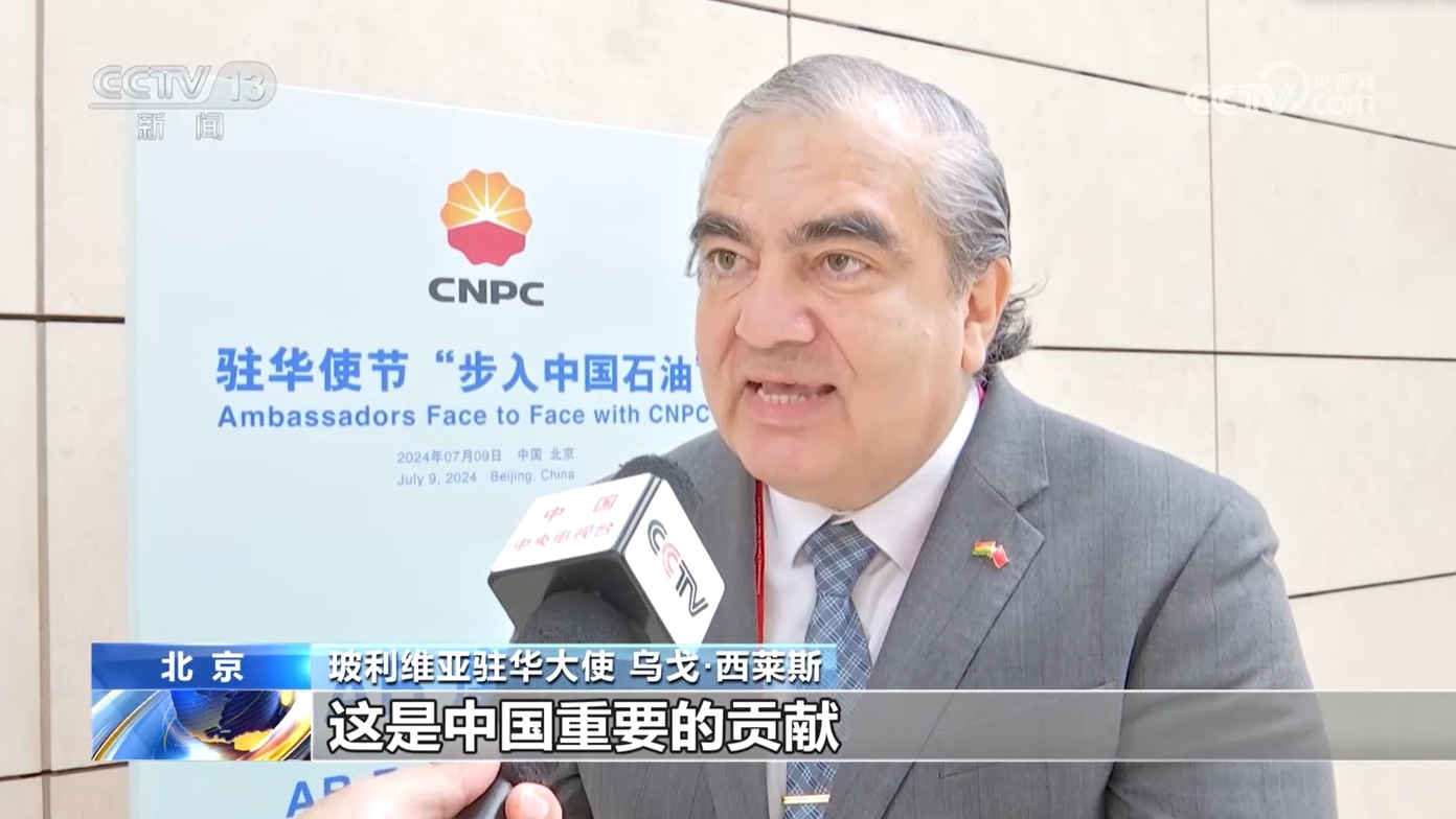 央視網(wǎng)消息:7月9日,百位駐華使節(jié)應(yīng)邀參加駐華使節(jié)“步入國(guó)企”系列活動(dòng)。使節(jié)們走進(jìn)中國(guó)石油,見(jiàn)證中國(guó)能源產(chǎn)業(yè)發(fā)展,感受中國(guó)綠色轉(zhuǎn)型步伐。