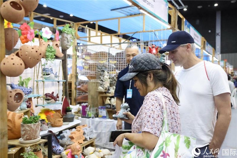 游客在蘭納博覽會(huì)特色展位上選購(gòu)工藝品。人民網(wǎng)記者 楊一攝
