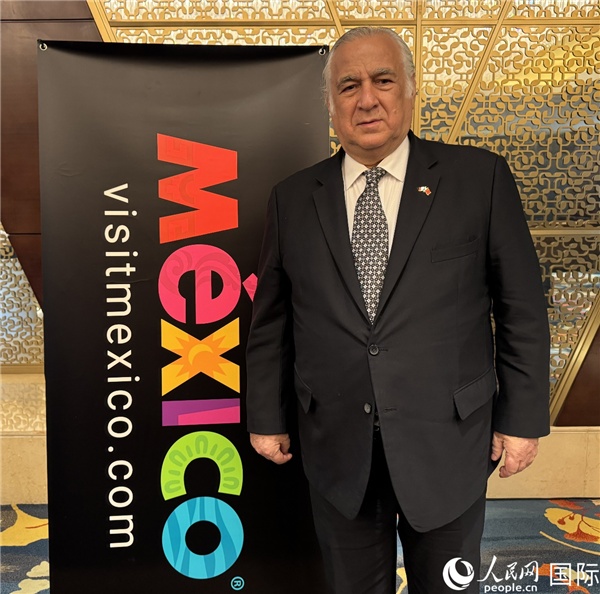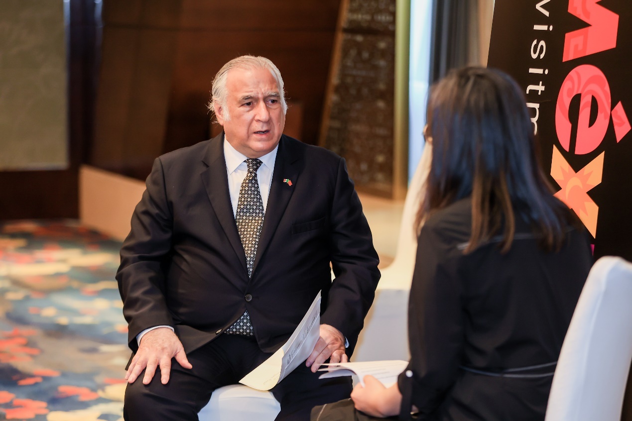 墨西哥旅游部長米格爾·托魯科·馬爾克斯接受人民網(wǎng)記者專訪。墨西哥駐華大使館供圖(王笑攝)