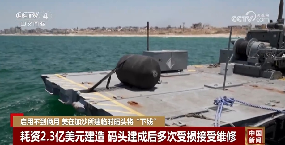 這座臨時碼頭5月中旬建成并投入使用。美國政府為其耗資2.3億美元,投入1000名美軍士兵、耗時2個月建造,原本預(yù)期在9月海水大漲時停用。但自投用以來,該碼頭多次被風(fēng)浪損壞并被拖走維修。
