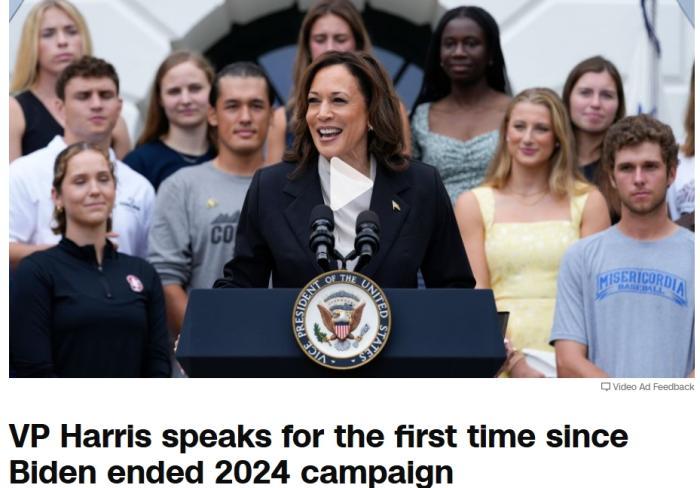 報道稱,哈里斯在講話中贊揚了拜登及其在白宮取得的成就。