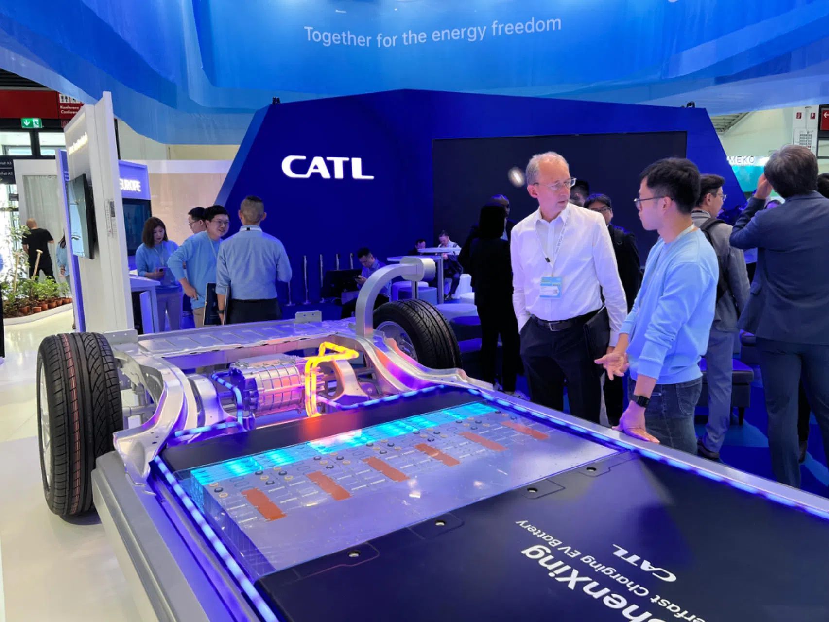 寧德時(shí)代在德國(guó)國(guó)際汽車及智慧出行博覽會(huì)的展臺(tái)。人民網(wǎng)記者 李強(qiáng)攝