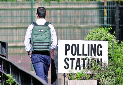 7月4日,英國議會下院選舉投票開始。圖為一名男子在一處投票站投票后離開。新華社記者 李穎攝