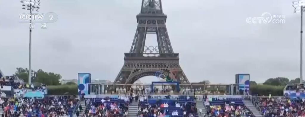 在記者身后正在進(jìn)行沙灘排球比賽,雖然天空下著小雨,但是絲毫沒有影響大家觀賽熱情,特別要介紹一下比賽所在位置是巴黎戰(zhàn)神廣場,也是觀看著名地標(biāo)埃菲爾鐵塔全貌的最佳觀景點。沙排和鐵塔同框,這樣的觀賽是不是分外驚喜和浪漫?