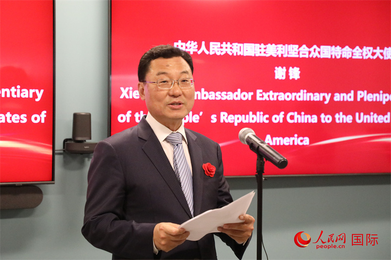 中國駐美國大使謝鋒在致辭中歡迎美國工商界繼續(xù)投資中國。人民網(wǎng)記者 李志偉攝