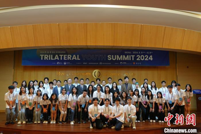 8月5日,2024年中日韓青年峰會(huì)在首爾開幕,圖為活動(dòng)現(xiàn)場合影?! ≈行律缬浾?劉旭 攝