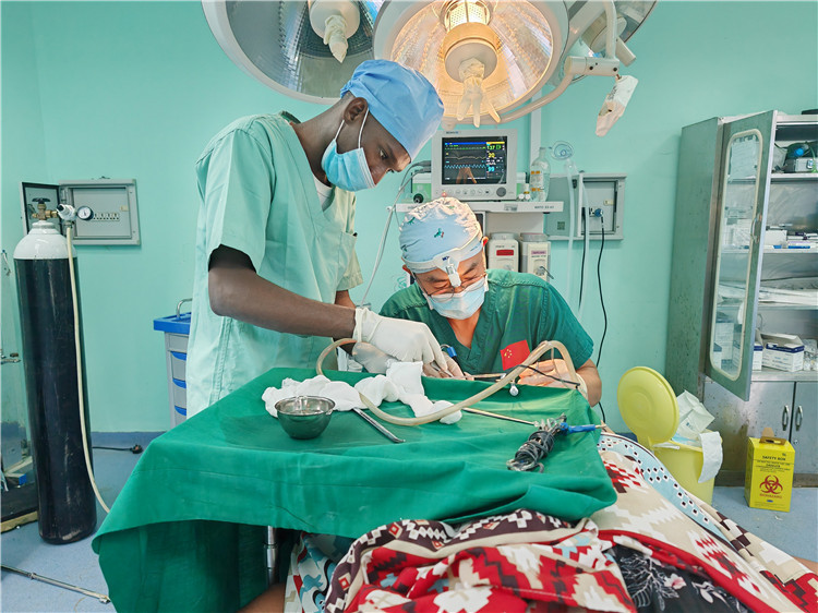 代理院長阿巴依說:“衷心感謝中國醫(yī)生的付出,手術(shù)周活動由中國醫(yī)療隊和本地醫(yī)院醫(yī)生聯(lián)合完成,這樣有利于更好地服務(wù)當?shù)鼗颊??!?/p>