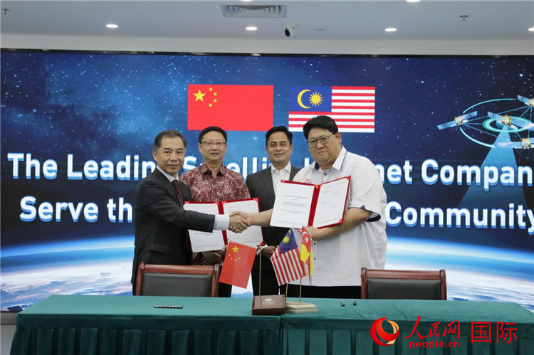馬來西亞雪蘭莪州創(chuàng)新與數(shù)字基礎(chǔ)設(shè)施執(zhí)行委員會(huì)主席法米(右二)于8月16日在北京見證了航天宏圖信息技術(shù)股份有限公司與雪蘭莪航空及技術(shù)創(chuàng)新有限公司之間的諒解備忘錄簽署儀式。人民網(wǎng) 王婧攝
