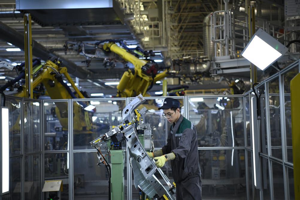 5月31日,工作人員在江蘇常州理想汽車智能制造基地焊裝車間工作。新華社記者柳文惠攝