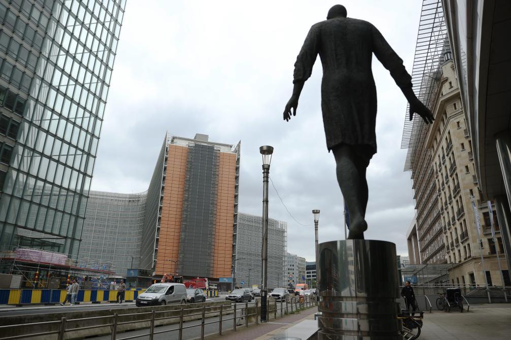 6月3日,在比利時(shí)布魯塞爾,車輛駛過(guò)歐盟委員會(huì)大樓。新華社記者趙丁喆攝