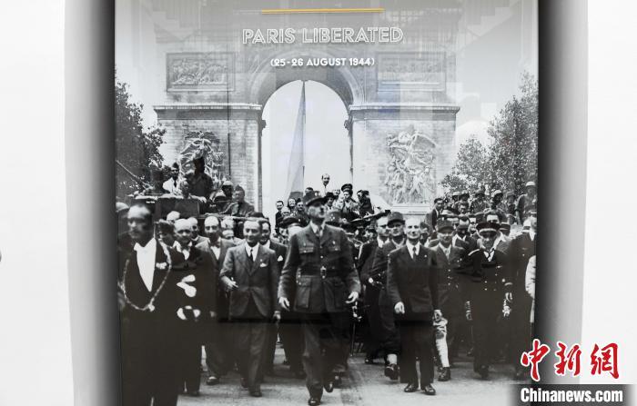 法國近日舉行一系列活動(dòng),紀(jì)念巴黎從納粹德國占領(lǐng)下解放80周年。圖為8月24日在巴黎解放博物館拍攝的戴高樂將軍在巴黎解放之際步入香榭麗舍大街的歷史照片。中新社記者 李洋 攝