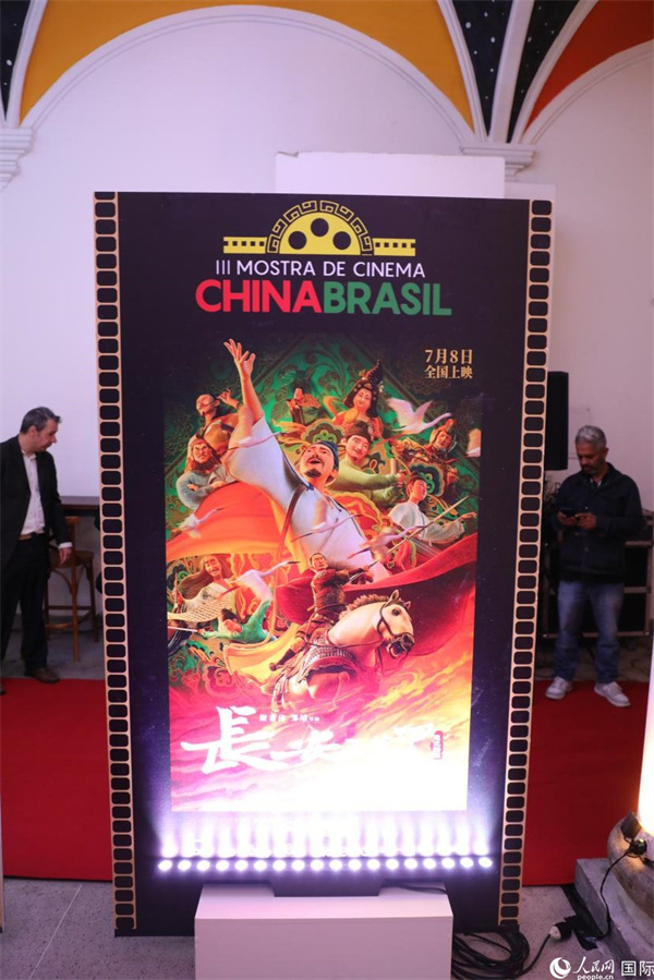 第三屆中國-巴西電影展參展影片、由《環(huán)球時報》文娛新媒體平臺“環(huán)球時報—娛評”推薦參展的影片《長安三萬里》,曾獲得第36屆中國電影金雞獎最佳美術(shù)片獎,圖為電影展舉辦地巴西里約熱內(nèi)盧勞拉—阿爾維姆文化之家迎賓廳里的《長安三萬里》海報。人民網(wǎng)記者 陳一鳴攝