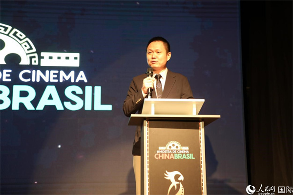 當?shù)貢r間8月26日晚,中國駐里約總領(lǐng)館副總領(lǐng)事王尉育在第三屆中國-巴西電影展開幕式上致辭。人民網(wǎng)記者 陳一鳴攝