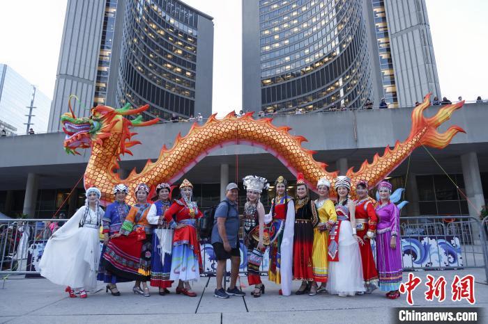 當?shù)貢r間8月30日,加拿大多倫多,在市政廳前廣場揭幕的第五屆多倫多龍文化節(jié)吸引大批各族裔民眾。由加拿大華人文化藝術(shù)團體聯(lián)合會主辦的本屆龍文化節(jié)將持續(xù)至9月1日,面向公眾免費開放。中新社記者 余瑞冬 攝