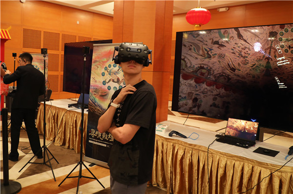 在本次活動的展覽現(xiàn)場,敦煌研究院與騰訊展示了“數(shù)字藏經(jīng)洞”和“尋境敦煌”等創(chuàng)新互動產(chǎn)品。來賓們參觀敦煌高清攝影和壁畫高保真復(fù)制品,通過VR虛擬游覽洞窟、實時拍攝紀(jì)念視頻、體驗“數(shù)字藏經(jīng)洞”云游戲,沉浸式體驗敦煌文化。“尋境敦煌”綜合應(yīng)用了三維建模技術(shù)、游戲引擎的物理渲染和全局動態(tài)光照、VR虛擬現(xiàn)實場景等前沿游戲科技。在現(xiàn)場,當(dāng)?shù)孛癖娕宕鱒R頭顯,能夠看到1∶1高精度立體還原的敦煌莫高窟第285洞窟,探索洞窟細(xì)節(jié)、零距離觀賞壁畫。據(jù)介紹,此次活動展出“數(shù)字藏經(jīng)洞”和“尋境敦煌”兩款數(shù)字文博創(chuàng)新產(chǎn)品,是敦煌研究院與騰訊的合作成果,也是首次走向海外線下展出。
