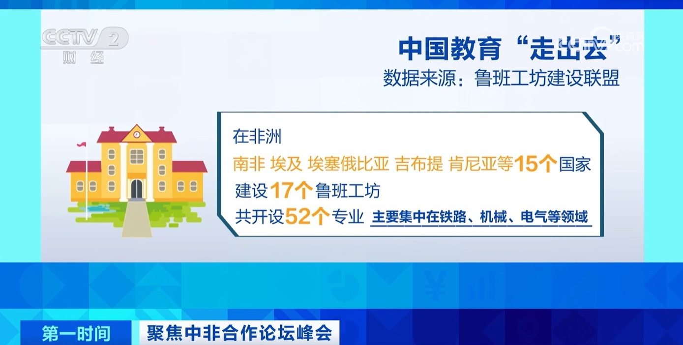 目前,我國已在南非、埃及、埃塞俄比亞、吉布提、肯尼亞等15個非洲國家設立17個魯班工坊,共開設52個專業(yè),主要集中在鐵路、機械、電氣等領域。