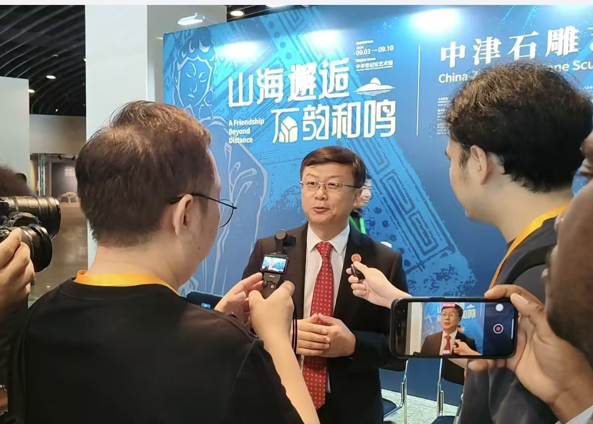 周鼎在接受媒體采訪中表示,此次中津石雕藝術(shù)展活動恰逢2024年中非合作論壇北京峰會召開之際,是中津石雕藝術(shù)交流的一場盛宴,體現(xiàn)了兩國文化合作的豐碩成果。這場活動也是中非文化藝術(shù)的跨時空對話,豐富了新時代中非命運共同體的內(nèi)涵。
