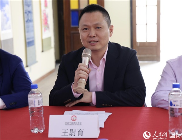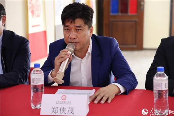 巴西中國浙江商會(huì)會(huì)長鄭俠茂在座談會(huì)上致辭。人民網(wǎng)記者 宋亦然攝