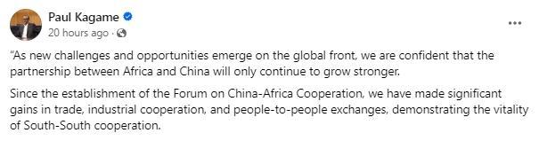 圖片來源:盧旺達(dá)總統(tǒng)卡加梅社交媒體賬號截圖