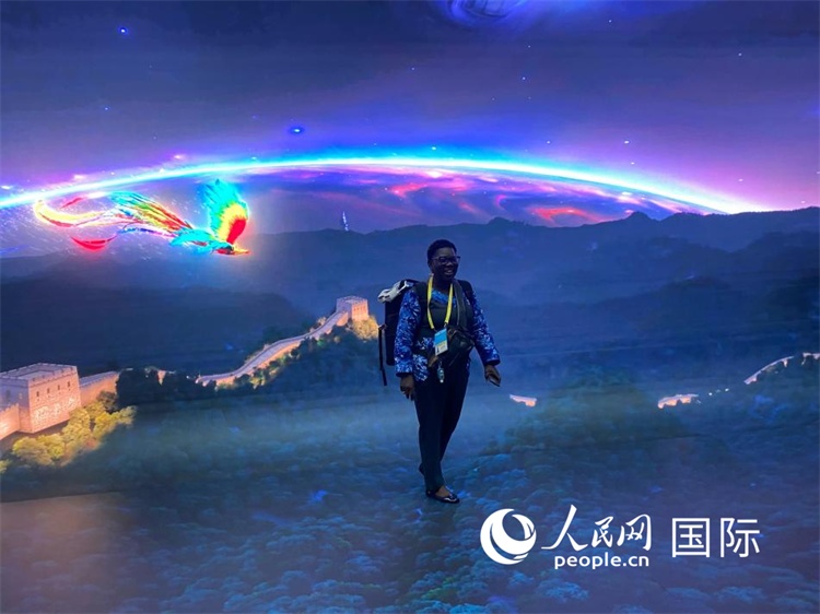 非洲媒體記者在新聞中心通過超高清技術(shù),沉浸式體驗(yàn)中國壯美河山。人民網(wǎng)記者 于洋攝