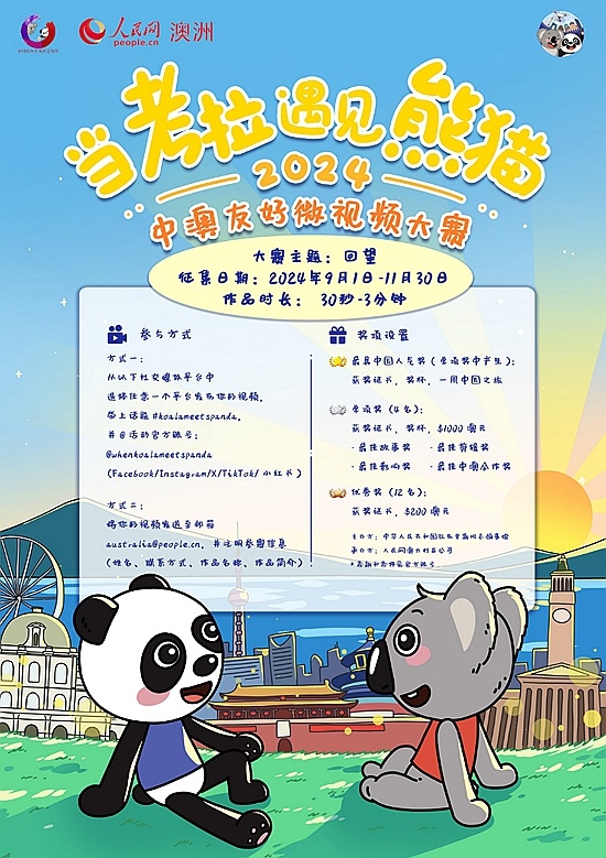 “當考拉遇見熊貓——中澳友好微視頻大賽”由中國駐布里斯班總領館主辦、人民網(wǎng)澳大利亞公司承辦。今年大賽的主題是“回望”,邀請中澳青年及歷屆參賽選手,通過拍攝和制作短視頻,回顧并展示中澳兩國之間深厚的友誼。