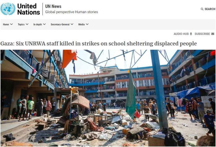 報道稱,當天,古特雷斯當天在社交媒體發(fā)文稱,“加沙地帶一所用作避難所的學校收容了約1.2萬人,該校今天再次遭到以色列空襲,遇難者中包括6名近東救濟工程處工作人員?!?/p>