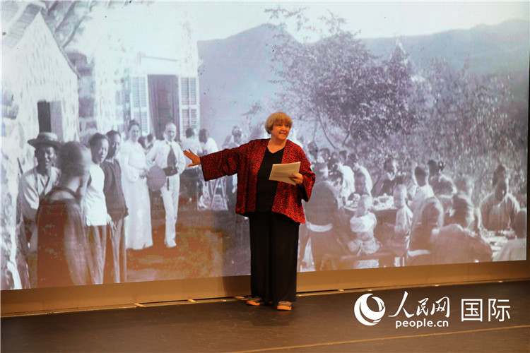 美國(guó)“鼓嶺之友”代表穆言靈講述友好故事。人民網(wǎng)記者 李志偉攝