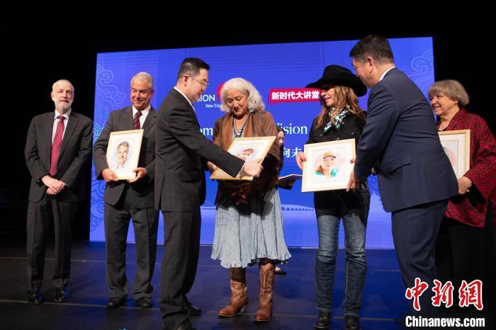 當(dāng)?shù)貢r(shí)間9月12日,以“傳承與發(fā)展 攜手向未來”為主題的“新時(shí)代大講堂”系列活動(dòng)在美國紐約舉辦。圖為嘉賓向中美“Z世代”辯論交流會(huì)8位青年辯手頒發(fā)紀(jì)念品。 中新社記者 廖攀 攝