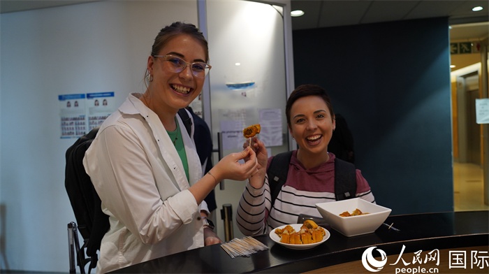 遞簽來(lái)賓品嘗簽證中心提供的美味中秋月餅。人民網(wǎng) 劉暢攝