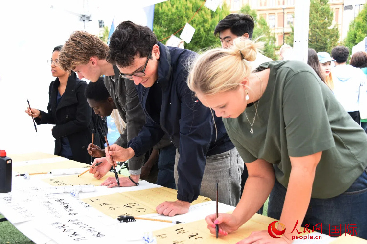 體驗(yàn)中國(guó)書(shū)法。人民網(wǎng)記者 殷淼攝