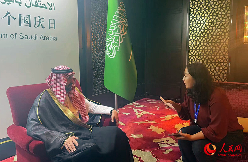 沙特駐華大使阿卜杜拉赫曼·哈勒比接受人民網(wǎng)記者專訪。人民網(wǎng) 法伊薩攝