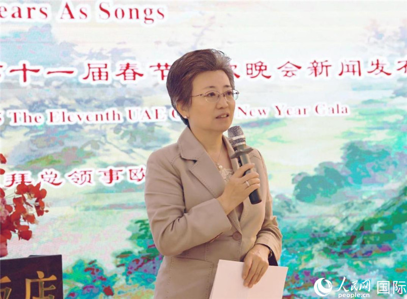 第十一屆阿聯(lián)酋華僑華人春晚組委會總策劃兼總導(dǎo)演李冬霞介紹晚會籌備情況。人民網(wǎng)記者 管克江攝