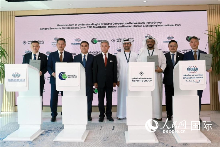 人民網(wǎng)迪拜9月27日電 (記者管克江)近日,海南洋浦經(jīng)濟(jì)開發(fā)區(qū)管理委員會(huì)與阿布扎比港務(wù)集團(tuán)、中遠(yuǎn)海運(yùn)港口阿布扎比碼頭有限公司和海南港航國際港務(wù)有限公司在阿布扎比簽署諒解備忘錄,洋浦與阿布扎比結(jié)成姊妹港。