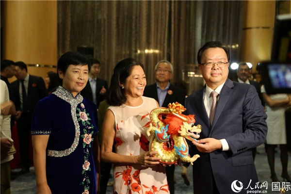 菲律賓總統(tǒng)夫人麗莎·馬科斯(左三)、菲律賓參議長弗朗西斯·埃斯庫德羅(右二),菲律賓政府有關(guān)部門負(fù)責(zé)人等出席招待會(huì)。人民網(wǎng)記者 樊帆攝