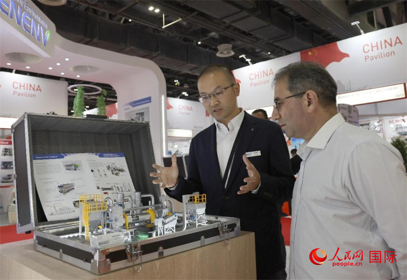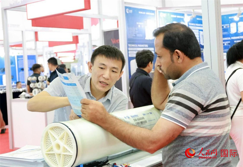 中企推出的綠色能源海水淡化系統(tǒng)吸引參展商關(guān)注。人民網(wǎng)記者 管克江攝