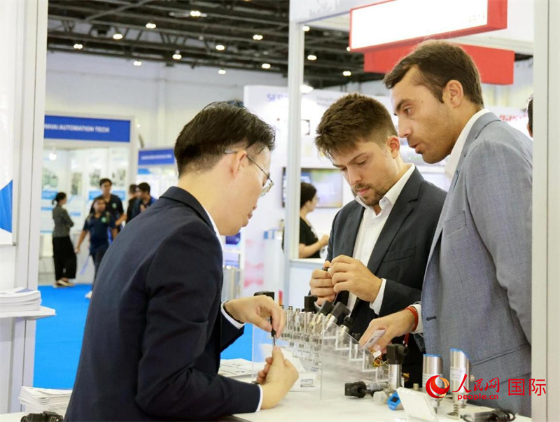 中外參展商交流。人民網(wǎng)記者 管克江攝