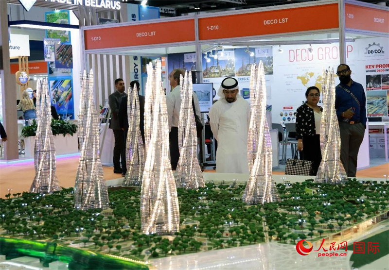第二十六屆迪拜國際水處理、能源及環(huán)保展上,觀眾在參觀綠色城市構(gòu)想沙盤。人民網(wǎng)記者 管克江攝
