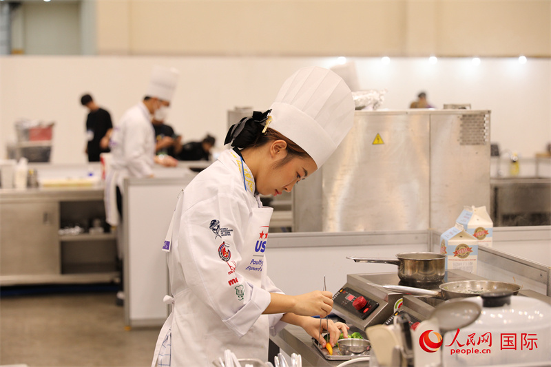 當(dāng)?shù)貢r間10月5日,廚師在第21屆釜山國際美食博覽會上展示廚藝。人民網(wǎng)記者 莽九晨攝