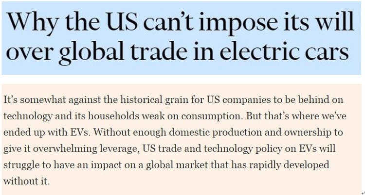 比如,美國政府現(xiàn)在想全面禁止在美銷售的電動汽車使用別國軟件,并尋求盟友支持,但因其自身經(jīng)濟(jì)基礎(chǔ)不堅實(shí),所以難以對他國產(chǎn)生決定性影響。