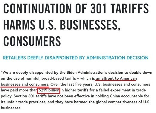 美國零售業(yè)領(lǐng)導(dǎo)者協(xié)會負(fù)責(zé)國際貿(mào)易的副主席布萊克·哈登就曾發(fā)表文章,批評拜登政府決定延續(xù)301關(guān)稅的做法是“對美國企業(yè)和消費(fèi)者的侮辱”。