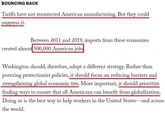 文章認(rèn)為,華盛頓不應(yīng)奉行保護(hù)主義政策,而應(yīng)把重點(diǎn)放在減少壁壘和加強(qiáng)全球經(jīng)濟(jì)聯(lián)系上,優(yōu)先尋找確保所有美國人從全球化中受益的方法,“這才是幫助美國乃至全世界工人的最好方式”。
