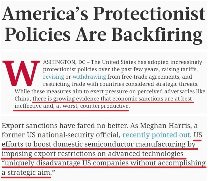 正如美國前國家安全官員梅根·哈里斯最近所指出的,美國試圖通過對先進(jìn)技術(shù)實(shí)施出口限制來強(qiáng)化國內(nèi)制造業(yè)的做法,“只是對美國公司造成了不利影響,沒有實(shí)現(xiàn)任何戰(zhàn)略目標(biāo)”。