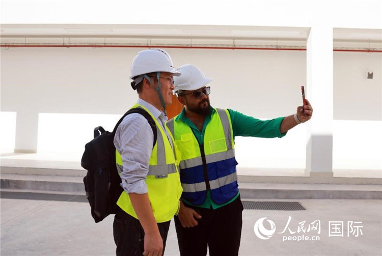 參觀完學(xué)校主樓,項(xiàng)目工程師穆罕默德主動(dòng)提出帶記者去配樓看看?!耙晾讼奶旌軣幔瑢W(xué)們要多喝水。你看,學(xué)校配備的這臺(tái)冷水機(jī),功能強(qiáng)大。再看那邊的衛(wèi)生間,干凈又整潔……”原來(lái),默罕默德主管學(xué)校的后勤設(shè)施建設(shè)。他說(shuō),中國(guó)學(xué)校建設(shè)的高質(zhì)量就體現(xiàn)在這些細(xì)微處?!白鳛橐晾巳?,能參加這樣一項(xiàng)民生工程,為改善當(dāng)?shù)亟逃龡l件出一份力,我感到非常驕傲!”