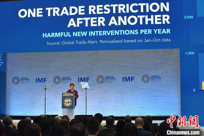 當(dāng)?shù)貢r(shí)間10月17日,國際貨幣基金組織(IMF)總裁格奧爾基耶娃在華盛頓發(fā)表講話說,未來低增長和高債務(wù)并存的局面將給全球經(jīng)濟(jì)帶來壓力。 中新社記者 沙晗汀 攝