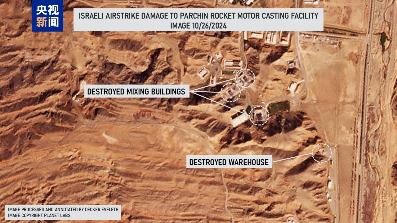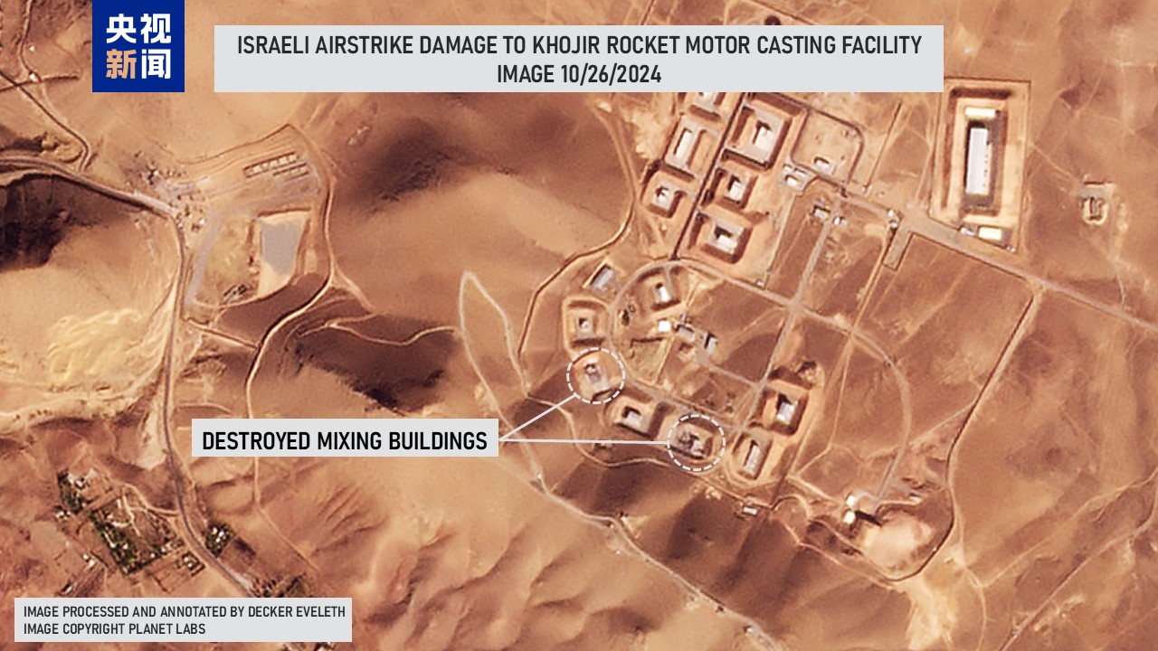 當(dāng)?shù)貢r(shí)間27日,總臺(tái)記者獲悉,一名美國研究人員稱,衛(wèi)星圖像顯示,以色列26日對伊朗發(fā)動(dòng)的軍事襲擊破壞了位于德黑蘭附近的大型軍事基地帕爾欽(Parchin)和大型導(dǎo)彈生產(chǎn)基地科吉爾(Khojir)的幾棟建筑,與生產(chǎn)彈道導(dǎo)彈固體燃料相關(guān)的設(shè)施遭到精準(zhǔn)打擊。
