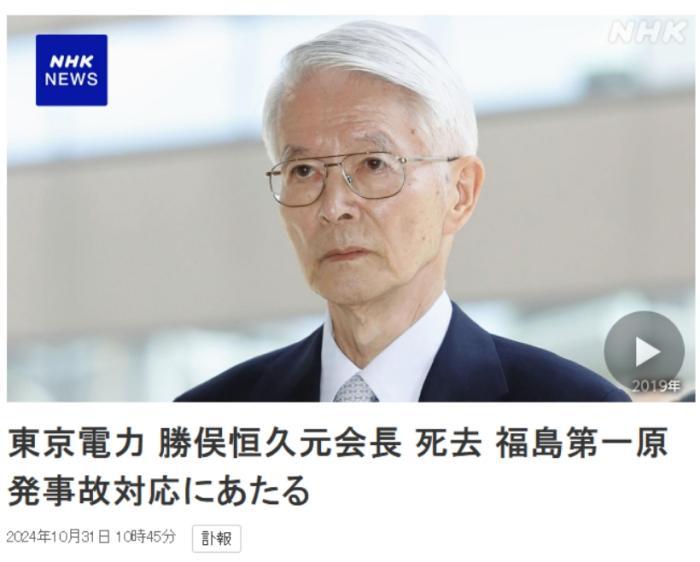 中新網10月31日電 據日本廣播協會(NHK)當地時間31日報道,日本東京電力控股公司前會長勝俁恒久于10月21日去世,終年84歲。